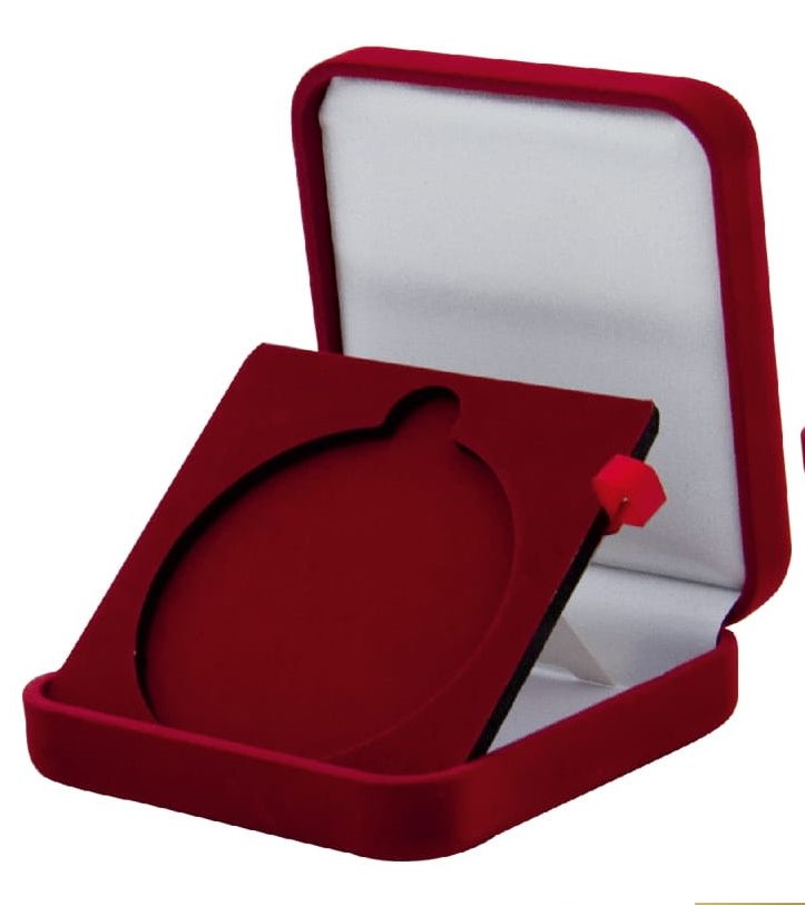 Etui welurowe o wymiarach 90 x 90 mm. Pasuje do medalu o średnicy 70 mm.